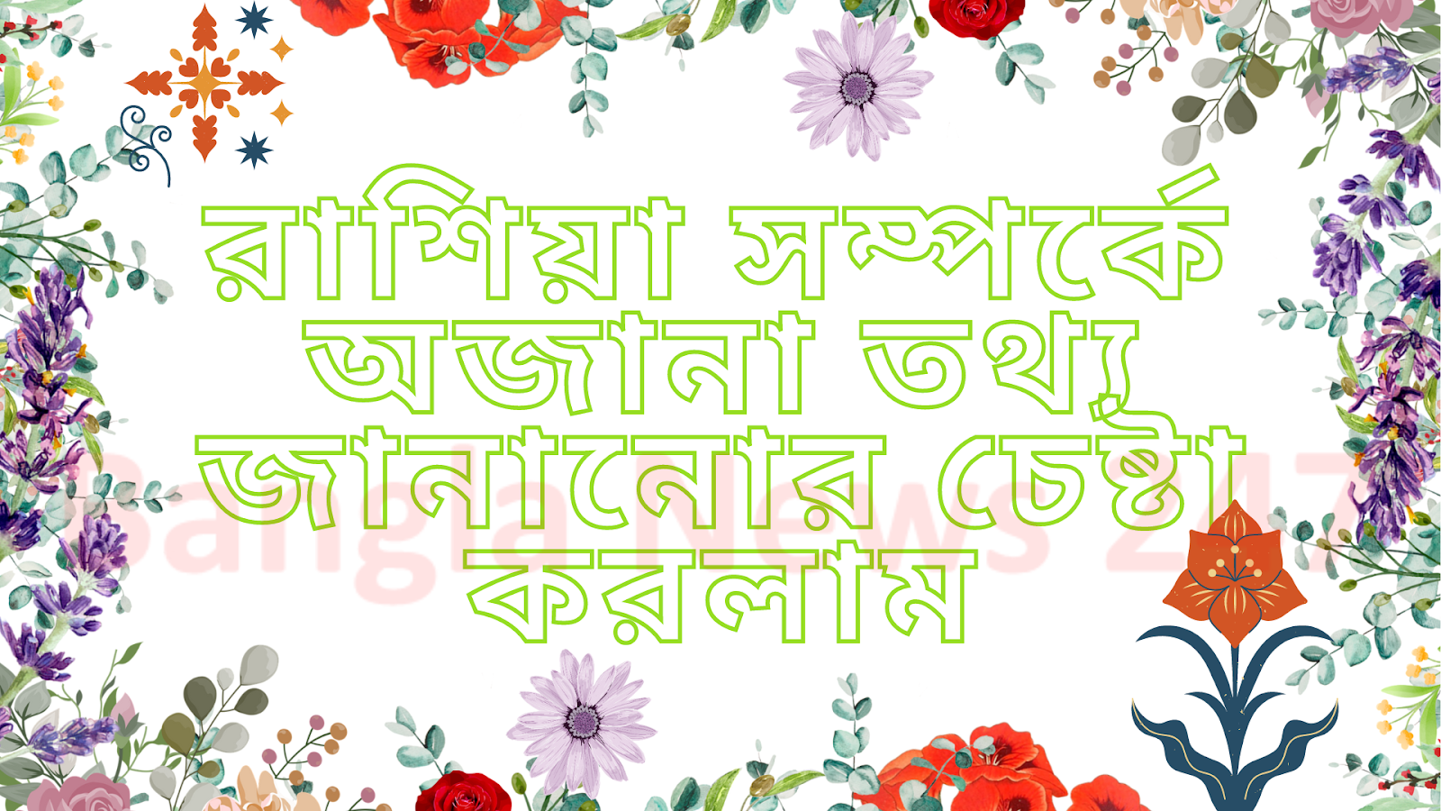 প্রিয় পাঠক আমরা আজকে আলোচনা করবো রাশিয়ার অজানা তথ্য সম্পর্কে, আপনারা রাশিয়া সম্পর্কে অনেক কিছুই জানার চেষ্টা করেন এর জন্য আমি আমার এই সাইডে অনেক বিষয়ে আলোচনা করেছি। এরই পরিপ্রেক্ষিতে আজকে আমি রাশিয়া অজানা তথ্য সম্পর্কে জানানোর চেষ্টা করলাম, আশা করব আপনারা রাশিয়ার অজানা সব তথ্য গুলো জানবেন সেগুলো জেনে অবশ্যই ভালো লাগবে।